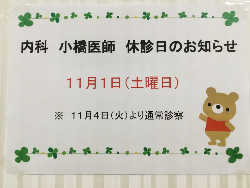 誠に勝手ながら、小橋先生不在の為、下記日程を
